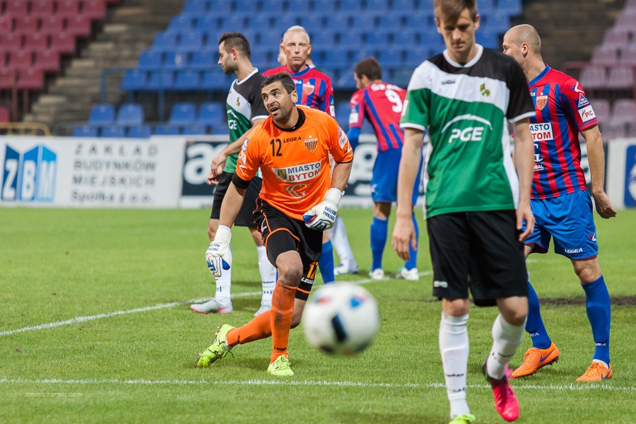 Drużyna PGE GKS Bełchatów przegrała na stadionie przy ul. Olimpijskiej w Bytomiu z miejscową Polonią 0:2 (0:0). Powrót po latach na ten stadion uwiecznił na zdjęciach Adrian Mielczarski.