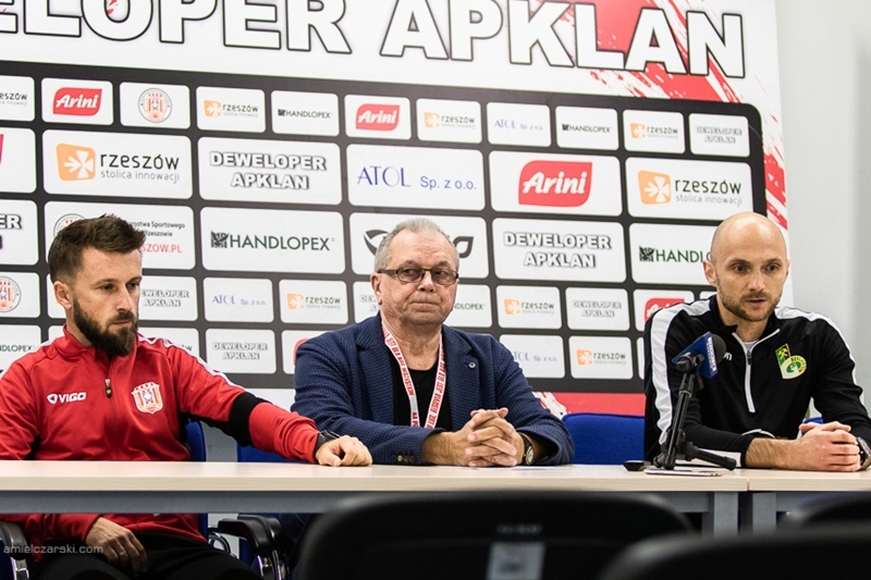 Po twardym, ale mało emocjonujacym czysto piłkarsko spotkaniu, swoimi opiniami podzielili się szkoleniowcy drużyn z Bełchatowa i Rzeszowa.