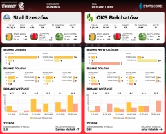 Kiedy obie drużyny strzelały do tej pory gole? Bełchatowianie w pierwszej połowie zdobyli 4 bramki, po zmianie stron 10, natomiast "Żurawie" 12 do przerwy i aż 21 w drugiej części gry. GKS na razie czterokrotnie kończył swoje mecze z czystym kontem a rzeszowianie osiem razy.